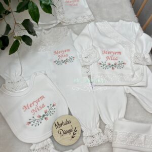 Hastane Çıkışı Seti, bebeğinizin ilk günlerinde ihtiyaç duyduğu parçaları bir araya getirir. Konforlu, şık ve kullanıma hazırdır.