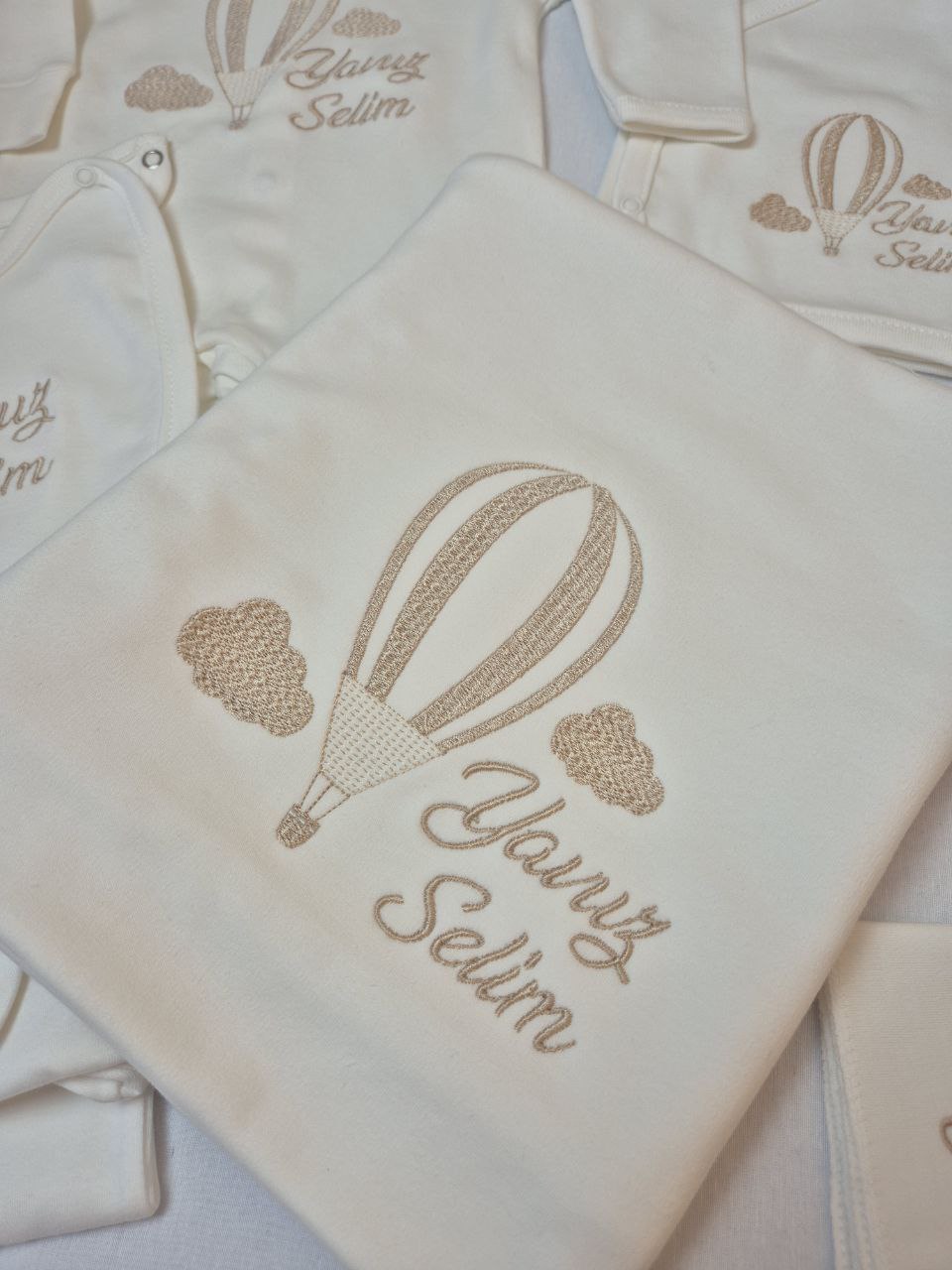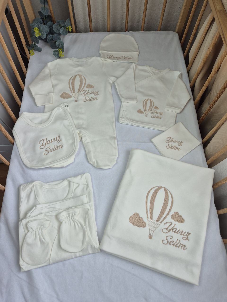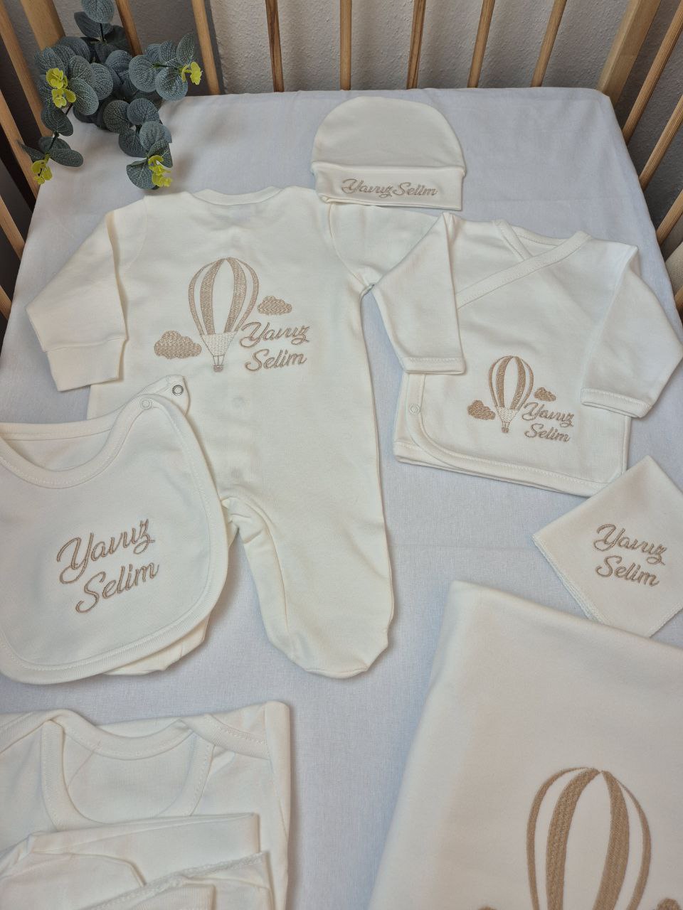 Hastane Çıkışı Seti, bebeğinizin ilk günlerinde ihtiyaç duyduğu parçaları bir araya getirir. Konforlu, şık ve kullanıma hazırdır.