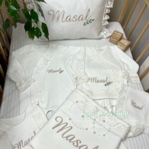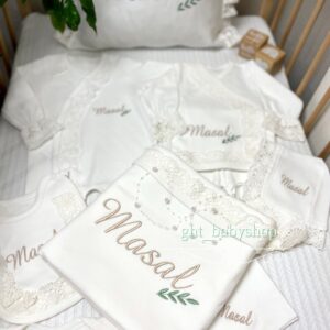 Hastane Çıkışı Seti, bebeğinizin ilk günlerinde ihtiyaç duyduğu parçaları bir araya getirir. Konforlu, şık ve kullanıma hazırdır.